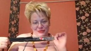 Ξανθιά αγγελούδα με χείλια σιλικόνης να χτυπάει τον